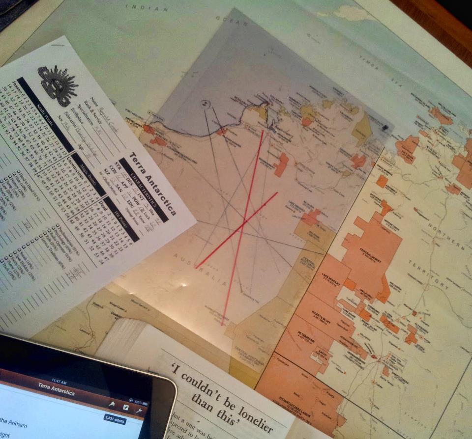 In our first meeting we discussed the historical background and generated player characters . Not by rolling stats from the rulebook, but by talking about Australia in World War II, life during wartime, the personnel that might get chosen for a military Antarctic expedition, and the demands and possible themes of the coming campaign.
