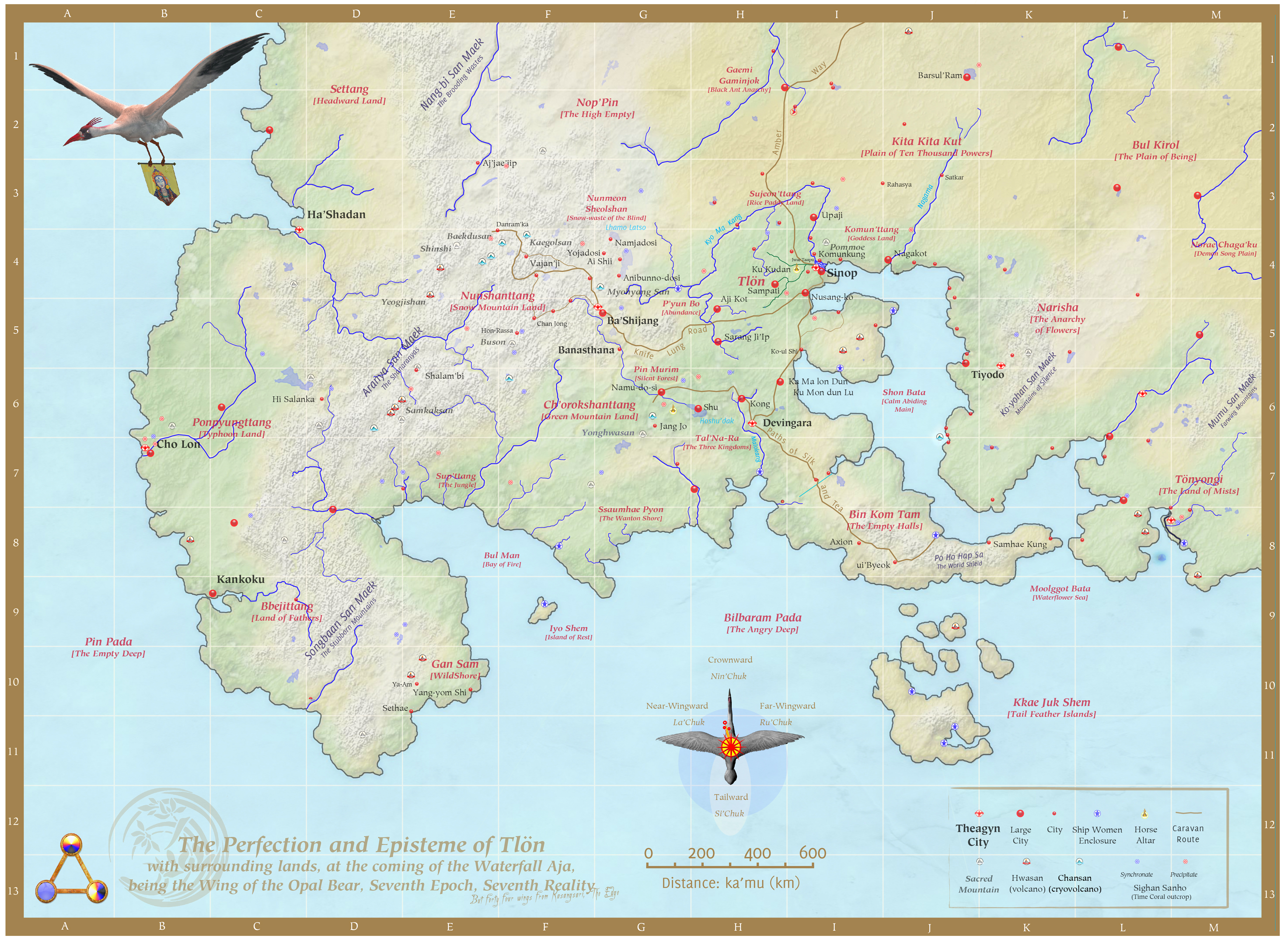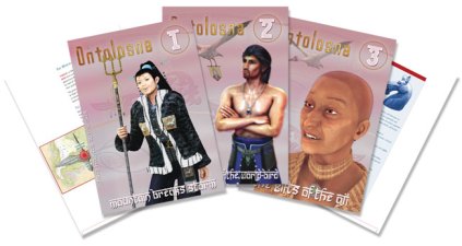 The Creators’ Guidebooks provide an overview of the developing world of Ontolosna, are available for free download. Mountain Breaks Storm contains a brief introduction to the Ontolosnan adventure. On the Back of World-Bird describes the three suns, the known world, the physik of shadow, the nature of time, and other basic ‘ontological’ facts. Gifts of the Aji introduce the human and animal Aji, the movers and shakers of Ontolosnan history.